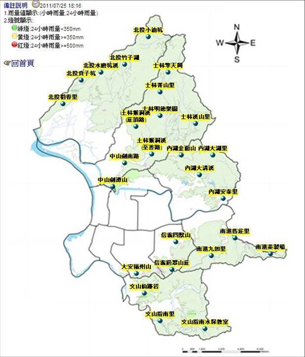 發稿單位:臺北市大地工程處 發稿日期:100年8月23日 聯 絡 人:李科長正利 聯絡電話:02-27593001轉3100 臺北市政府因應山坡地防災需要,92年起初步設置15處坡地雨量觀測站,提供防災決策參考,99年成立臺北市大地工程處,為更精確掌握北市50條土石流潛勢溪流及24處老舊聚落等區域防災需求,再增11座坡地雨量站,迄今雨量站數共達26處,每5.44平方公里就有1處山坡地雨量站,全面提供中央氣象局、各防災單位及市民查詢使用。 臺北市大地工程處表示,26處坡地雨量站分布北市五大山系(詳附表)。 大地工程處同時表示,各坡地雨量站雨量資料已整合至「山坡地防災資訊系統」(http://163.29.36.178/sora/),市民朋友可透過臺北市大地工程處網站查詢(http://www.tcge.taipei.gov.tw/MP_105041.html),該系統除可查詢土石流潛勢溪流及老舊聚落資料外,今年度更針對之士林區(3)、信義區(2)、南港區(1)及文山區(1)等7處地質敏感易致災地區,新增並建置地質敏感防災地圖及警戒表。 大地工程處處長林裕益指出,太平洋每年5~11月防汛期形成颱風約有20~30個,提醒市民,今(100)年截至目前計有9個颱風形成,雖僅艾利、桑達、米雷及梅花等4個颱風掠過台灣周圍海域,未直接侵襲台灣,但11月底前颱風的威脅機率高,呼籲市民仍應加強防颱準備觀念,大地工程處已建置【山坡地雨量站】及【山坡地防災資訊系統】,提供民眾即時查詢雨量及防災避難資訊,即時掌握防災資訊,以因應防災準備工作。 雨量站名 鄰近易致災區域 北投水磨坑溪 (1)貴子坑溪水磨坑溪匯流口上游山邊聚落