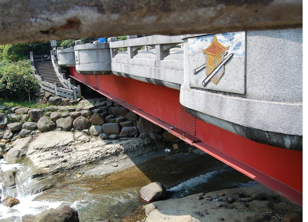此外,南港區「下寮橋」、「麗山橋」及「守信橋」,融入當地盛產竹筍元素,也考量用路人視覺景觀,以黑色仿竹筍造型之橋柱,結合鋼管增加視覺穿透性,塑造自然意象。大地工程處又表示,士林區外雙溪青山綠水間的「楓林橋」,由於山區環境潮溼易致鋼橋銹蝕,施作橋梁鋼結構刷漆防銹處理,即配合週遭綠色環境與單純空間感,選用「硃紅色」塗料,營造「萬綠叢中一點紅」的效果。