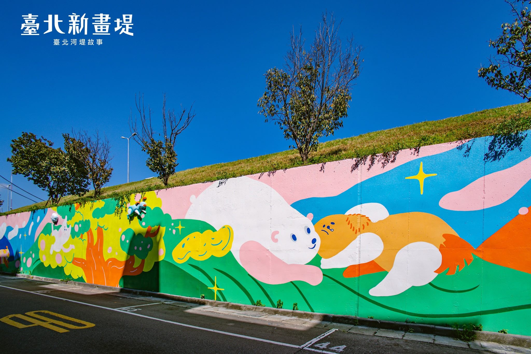 春末初夏時節,氣候宜人,正是外出活動的好時節,北市水利處推薦大家走一趟臺北士林區的河濱公園,這裡最近完成的超萌圖案堤壁畫作景點,保證讓寵貓愛狗的您一秒融化,各位鏟史官們快來一趟不一樣的小旅行,尋找屬於你(妳)的小確幸。 第一站我們從通河西街1段(重慶北路4段78號巷口)防汛道路出發,沿途大家會看到知名插畫家Nuomi諾米所繪製的「找貓咪」畫堤。畫面由左往右的安排,是少女尋找貓咪時各種心情的轉折,從擔憂、煩惱、連接至雨天在各處尋找貓,到後來逐漸接受到釋懷的過程,全都在畫作中精采呈現。這不僅只是一件藝術作品,更是一場互動的遊戲,諾米希望藉由畫作讓大家參與其中,一同在畫中尋找貓咪的蹤跡。 接著再沿這條道路向基隆河的上游方向走,映入眼簾的則是金曲獎設計師陳青琳的作品。她以「福氣」為主題,將河濱公園的堤防變身為一幅生動的繪本故事牆。這些畫面充滿了可愛的小動物,她希望藉由畫作讓大家感到幸福並從中獲得力氣。這些色彩繽紛的彩繪和立體結構的FRP塑造,已成為社區的一處亮點。這兩段以小動物為主題的堤壁美化作品已經成為百齡左岸河濱公園的一大景點,無論是遛狗、散步還是賞景,都是一個放鬆身心的好去處。 這些畫堤作品以可愛的小動物為主題,你可以在其中看到貓咪、狗狗、兔子、狗狗,還有台灣藍鵲和松鼠等。在春末夏初的季節,不妨帶著毛小孩來河濱,跑跑跳跳,一起感受初夏美好的時光。 北市水利處推動「臺北新畫堤」,邀集各個藝術家共同參與,借助他們獨特的創作風格,創造出結合地方特色的設計的堤壁,讓堤壁成為串連整個臺北市居民珍貴記憶的專屬故事書,歡迎大家來河濱發現不一樣的台北。